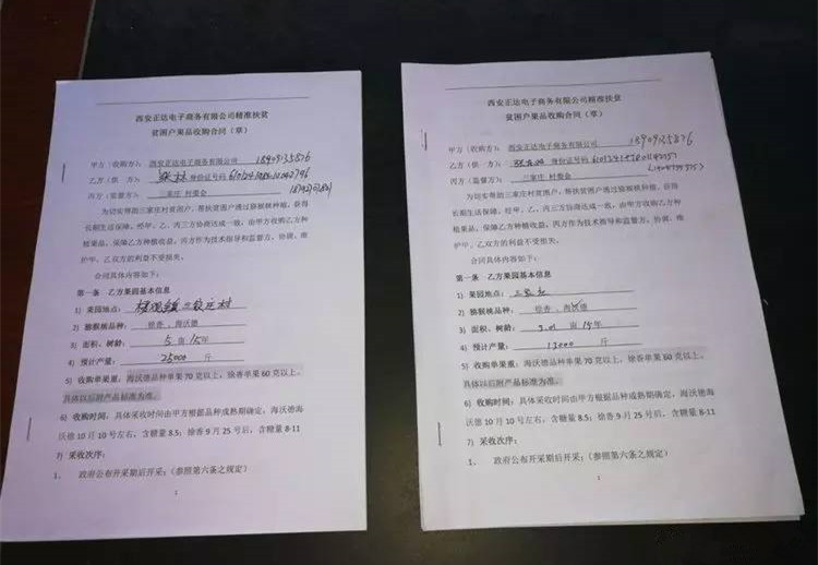 西安正达公司西北生鲜供应链基地总经理石亚军分别与贫困户张军效、张清亮签订了猕猴桃鲜果收购协议,协议签订的徐香和海沃德猕猴桃将高于市场价0.15元∕斤在成熟期予以收购。西安正达电商拟通过订单收购、优果优价等措施连续三年收购贫困户猕猴桃,引导带动贫困户种植优质无公害猕猴桃,提升优果种植水平。通过“电商+贫困户”模式推进产业脱贫,帮助贫困户早日脱贫致富。并辐射带动三家庄村1820亩猕猴桃生产标准化水平提升,实现整村脱贫致富目标。