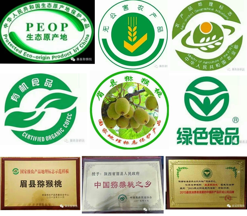 眉县秦岭猕猴桃基地,集猕猴桃种植、储藏包装、销售为一体的绿色猕猴桃生产基地,主栽猕猴桃品种有弥猴桃奇异果,绿心猕猴桃,海沃德猕猴桃,秦美奇异果猕猴桃,徐香猕猴桃,红心弥猴桃,红阳猕猴桃,黄心猕猴桃,华优猕猴桃,猕猴桃奇异果。基地处于秦岭山脉脚下,山多地少,森林覆盖率高,达到85%以上。方圆30公里内,无任何污染企业。常年平均气温为12.9摄氏度,年平均降水量在600毫米左右,年平均日照为2015.2小时,光照热量充足。充沛的雨量,宜于猕猴桃生长。目前基地直接参与种植的成员都是有多年丰富经验的技术人员,技术力量雄厚。