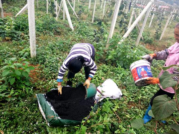 猕猴桃为浆果类藤本果树,是一种营养价值很高的新兴水果。其果实食用价值和药用价值均很高,近几年栽培面积逐年扩大。猕猴桃生长旺盛,枝叶繁茂,结果多而早,每年要消耗大量的养分,需要土壤及时补充有效养分以满足根系生长发育需求。