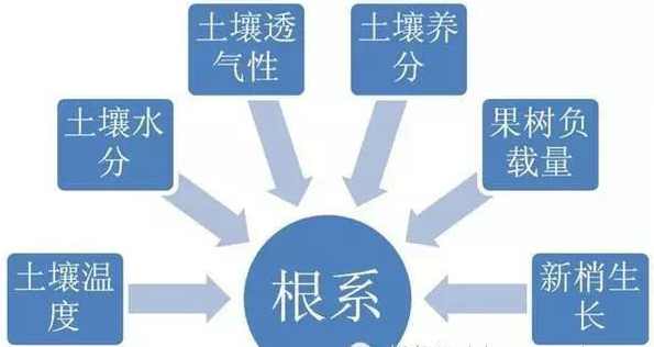 根系的生长一年中有2-3次高峰,且高峰的出现一般与地上部的生长高峰交错出现。果树叶片的光合产物超过30-40%用于根系的生长,有机营养(含储藏营养)不足,不利于根系的生长;开花坐果和果实生长发育消耗大,不利于根系生长;地上部生长旺盛,不利于根系生长。