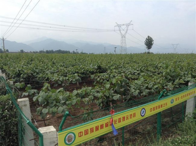 在陕西眉县,“翠香”2月下旬伤流开始,3月中旬萌芽,4月下旬至5月上旬开花,9月上旬果实成熟。品种适应性广,抗寒,抗日灼,较抗溃疡病。该品种选择“T”形架,采取单主干上架,双主蔓整形;选用“秦雄401”作雄株,雌雄比为(6~8):1,低温阴雨天需人工授粉,疏果控产,适期分级采收。
