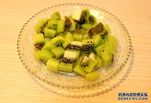 浓绿色果肉、味酸甜的猕猴桃品质最好,维生素含量最高。果肉颜色浅些的略逊。