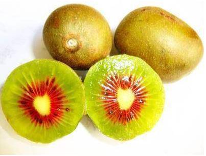 红心猕猴桃的常见品种有楚红、红阳、红华等,外观圆、大,底部凹陷,果肉中心呈红色放射状,果肉细嫩、香气浓郁、口感香甜清爽、酸度极低。红心猕猴桃的营养价值最高,是一种药食两用的水果,每百克鲜果肉含维生素C100-420毫克,比柑橘高5-10倍,比柠檬高11-13倍,比苹果高20-80倍。红心猕猴桃的微量元素含量较高,尤其是钙的含量较高,并且可以直接被人体吸收,是中老年人良好的补钙剂。但是由于红心猕猴桃的口味太甜,对于一般的人可能会觉得有点腻。