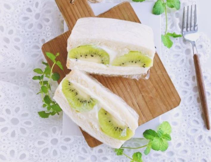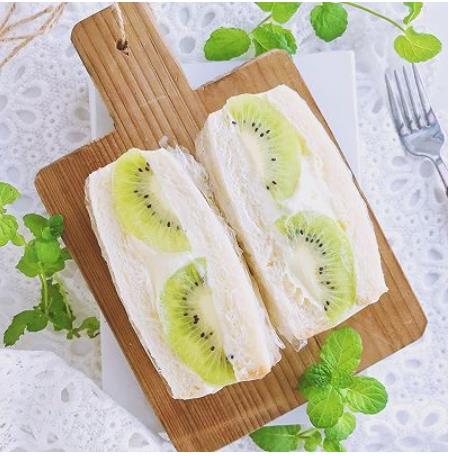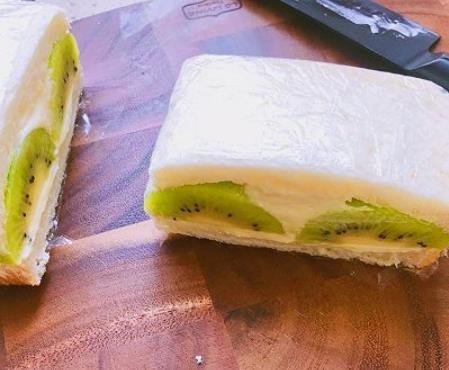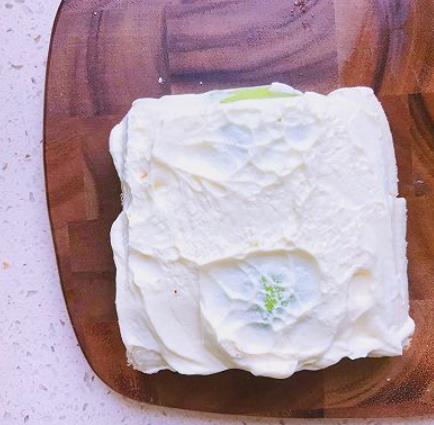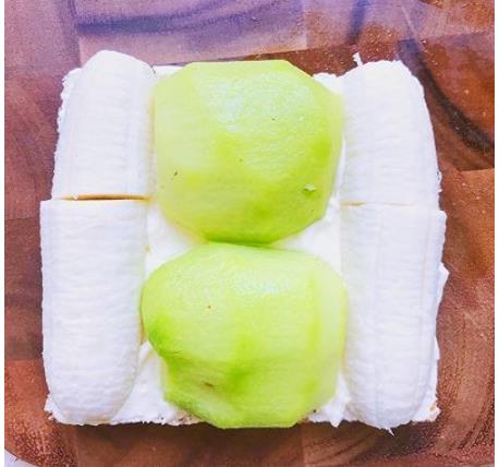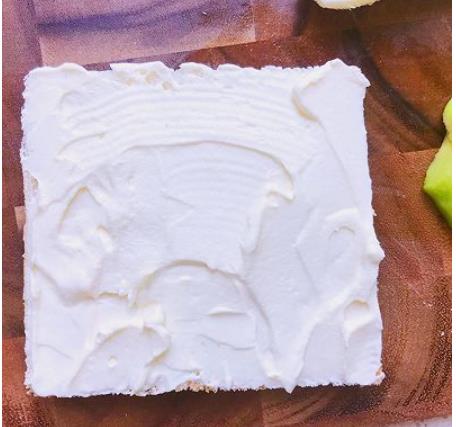 7、水果上均匀的抹上奶油 盖上另一片吐司