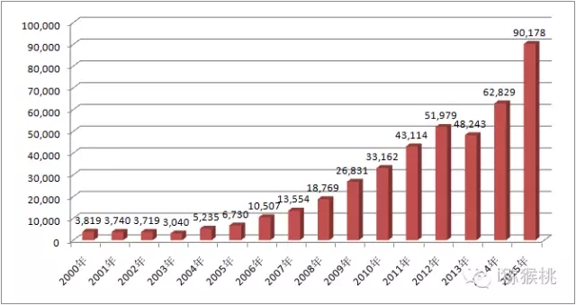图10、2000-2015年中国猕猴桃出口情况(单位:吨)