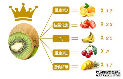 并且100克的猕猴桃维生素C含量=10个柑橘=13个柠檬=30个苹果