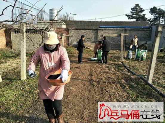东绑枝,西施肥。工作人员分成两队,各司其职,有序推进田间管理工作进度。