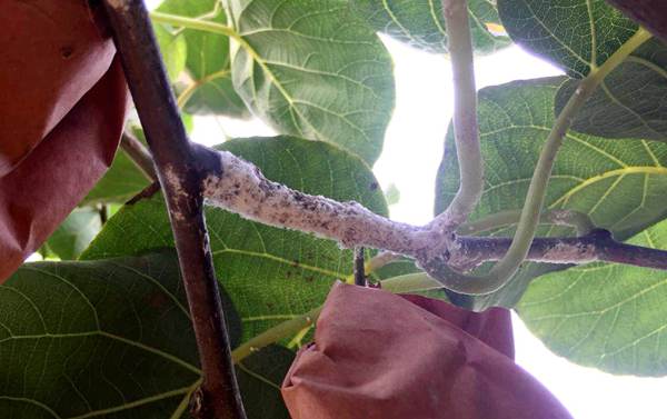 ①消除越冬雌虫:果树休眠期用钢丝刷刷掉枝条上越冬雌虫,剪除受害严重枝条烧毁,喷洒矿物油。