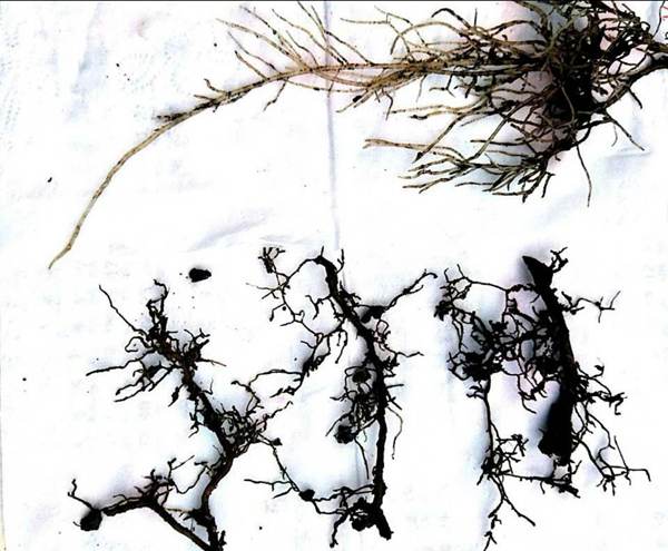 猕猴桃园受灾后根系大量褐变死亡