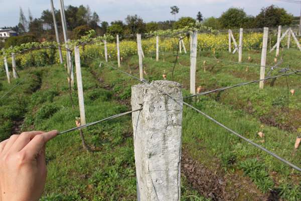 边上的立柱有些时候需要斜拉钢丝加固,一头缚住水泥柱(锚石),另一头连接水泥立株顶端,然后埋土踏实达到加固目的。
