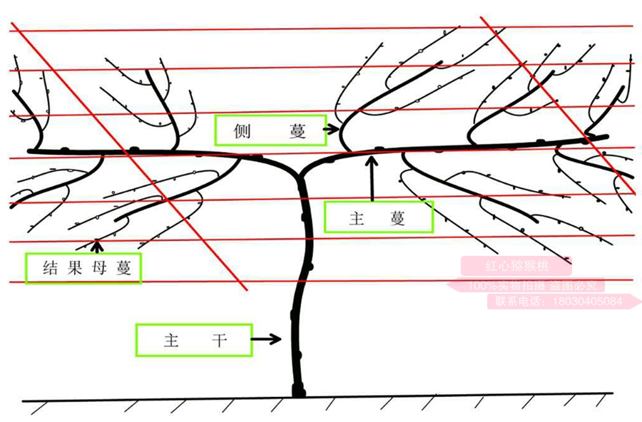 猕猴桃单干双臂结果母枝羽状分布树形示意图