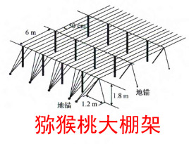 山区采用“T”型架适合山区梯田使用,平缓的猕猴桃果园更益采用平棚架。