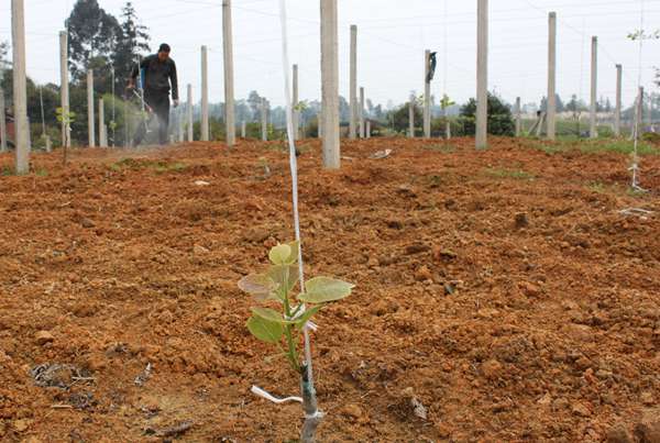实生苗定植一年后,根系能生长到一平方米的范围,直径达到拇指粗细。这时候嫁接,才能实现娘肥儿壮的效果,正常管理大半年,就可以实现一杆两蔓和几只结果母枝,为来年丰产打好技术。