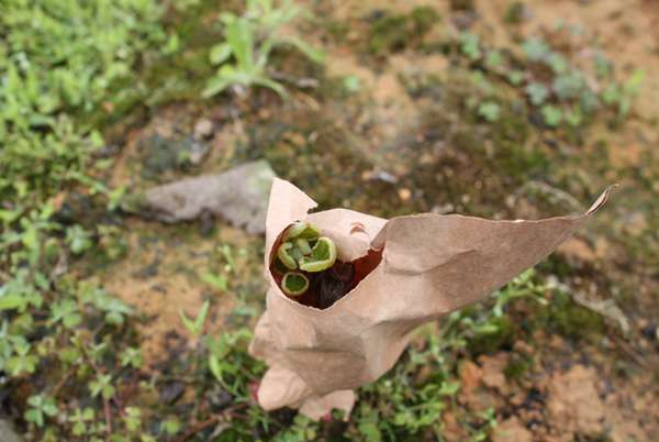 套个纸袋,还可以防止蜗牛啃食嫩芽,可谓一举两得。
