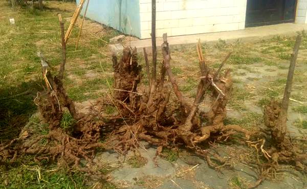 苗期发现有猕猴桃根腐病,我的观点和资料介绍的不同,我通常马上拔除,不要心慈手软,土壤中一旦发现有残留的树桩和侵染病原的根系要随时集中烧毁。感病的土壤可用150倍五氯酚钠或生石灰消毒,也可以错开原来的窝盘,在旁边定植。一颗嫁接苗才几元钱,如果留下一株病苗,每年花费的十元,几年下来浪费了几十元,也没有收成,得不偿失。