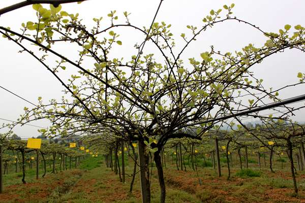 上图:修剪合理的猕猴桃公树,通风透光,提供更多的花粉。