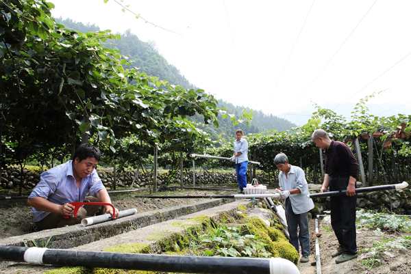 近年来,蒲江猕猴桃产业发展迅猛,2013年联想集团在蒲江投资十亿元,更是促进了猕猴桃基地规模化和产业化的扩建项目,为了避免规模猕猴桃基地,受到夏季极端干旱的影响,蒲江正在推广猕猴桃自动灌溉示范园,节水灌溉和施肥一体化。