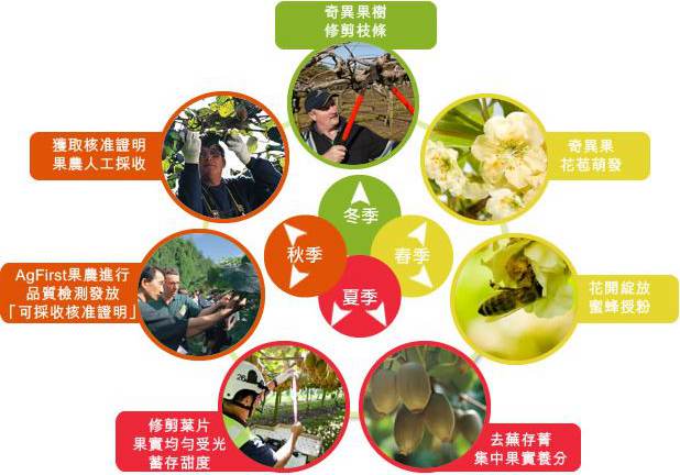 种植环节:果园和果农都有严格选入的标准和规范的操作流程。同时佳沛也会派专业的督导人员到各果园对测土管理,病害防治,枝条修剪,成熟采摘等技术支持。