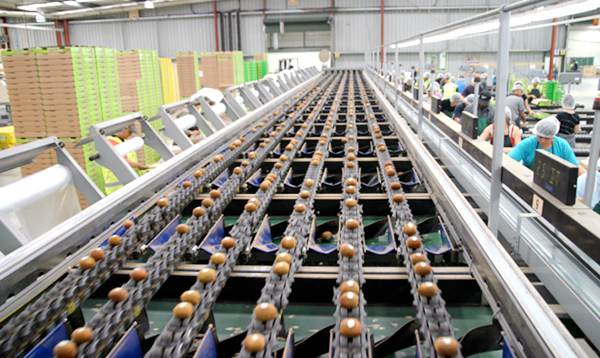 采收后:sungold金奇异果会被送到包装厂进行品控和处理。奇异果一般会经过热处理或钙离子浴来延长奇异果的储存时间。包装厂的分选设备根据奇艺果的大小,成熟度和重量自动筛选、分配、包装。使每箱水果品质一致,便于不同温度的冷藏和不同地区的出口。在仓储环节,佳沛保证奇异果在原产地和销售地的低氧低温高二氧化碳的储存环境。