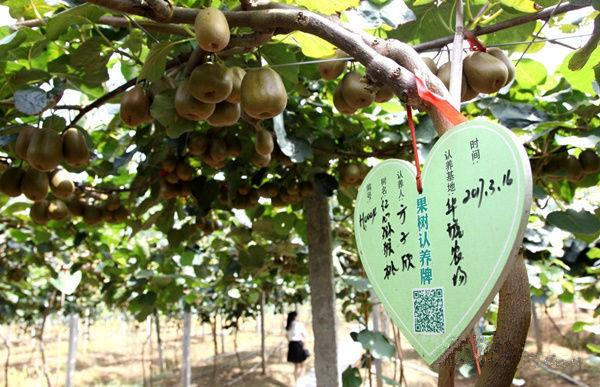 据悉,认养人认养一株猕猴桃树每年只需交400元,成熟后果实全部可以自己来采摘,也可以委托好友来采摘或快递,今年认养人平均可以得到1000元的红心猕猴桃。