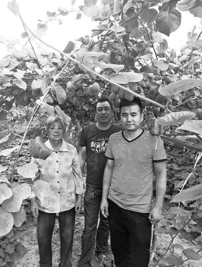 朱云汉(右一)和种植户在猕猴桃园的合影