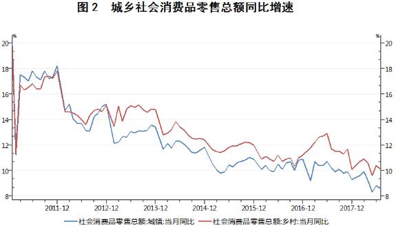 根据国家统计局数据显示,7月当月,全国社会消费品零售总额的同比增速为8.8%,从城乡差异来看,乡村地区7月当月社会消费品零售总额增幅为10.1%,1月~7月累计增速为10.4%;城镇地区7月当月社会消费品零售总额增速为8.6%,1月~7月累计增速为9.1%。可见,农村地区增速持续高于城镇地区(参见图2)。
