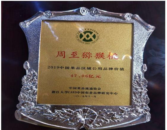 本次大会由中国果品流通协会主办,大会主题是品牌引领高质量发展,旨在提升全国果品品牌影响力。周至猕猴桃以47.06亿元获2019中国果品区域公用品牌价值榜第十位猕猴桃类第一位。周至猕猴桃获2019中国优秀果业品牌策化案例。