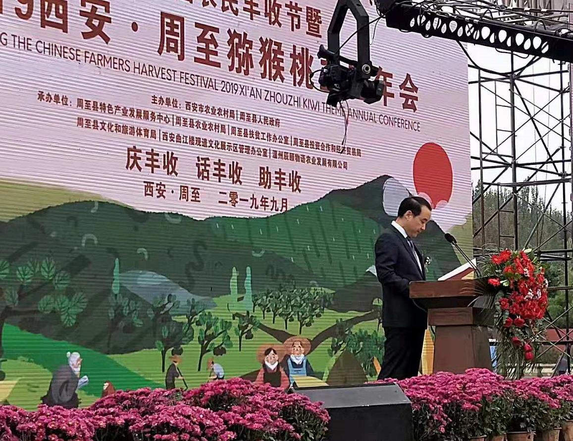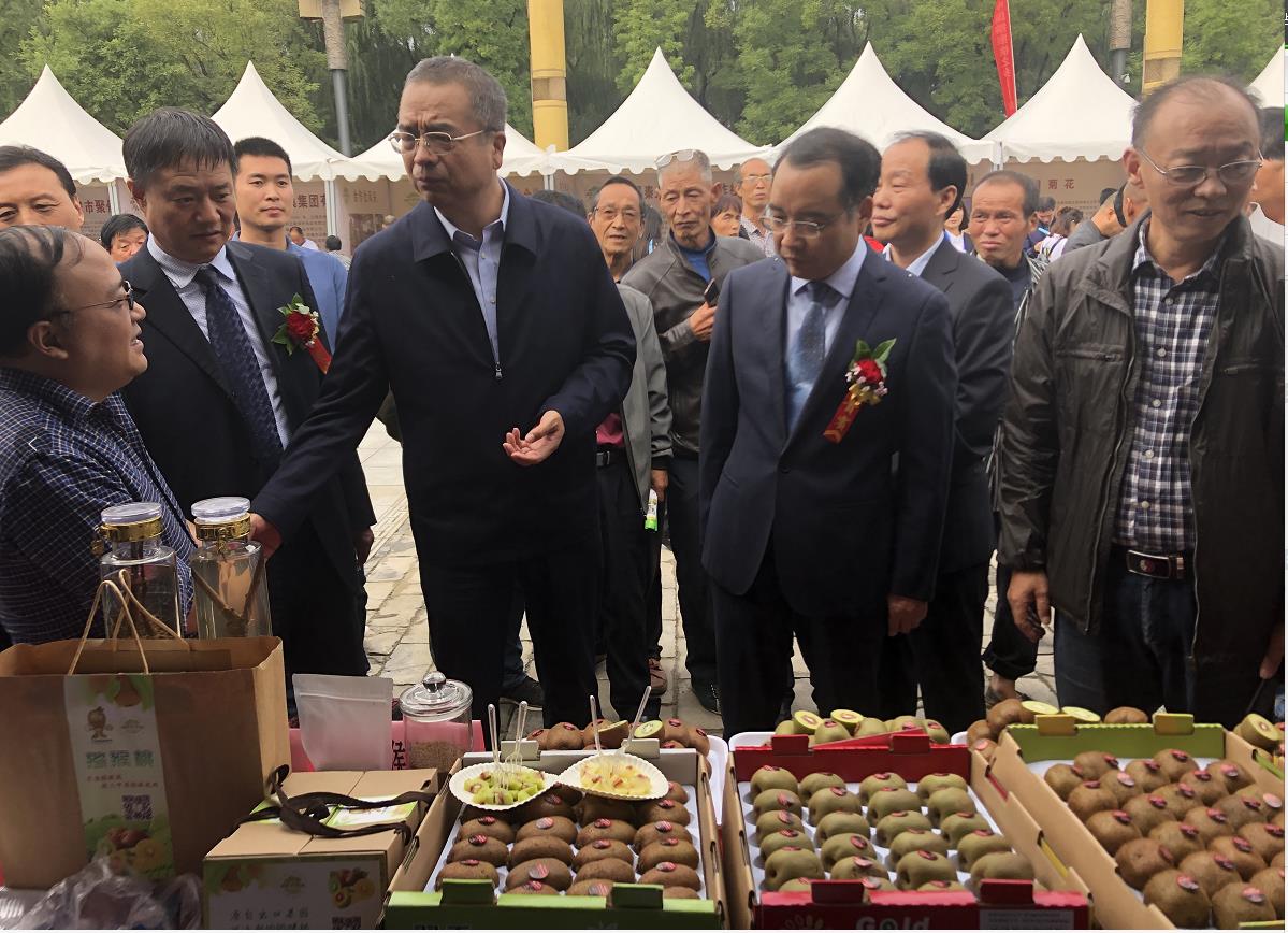 周至县县委书记杨向喜陪同市领导副市长杨广亭参观中国猕猴桃网展位