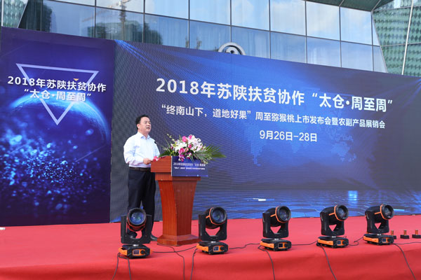 2018年苏陕扶贫协作“太仓·周至周”-“终南山下,地道好果”周至猕猴桃上市发布会暨农副展品展销会,2018年9月26日下午在江苏省太仓市隆重开幕。