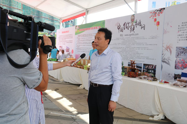 周至县农业局局长何局长在接受当地电视台采访