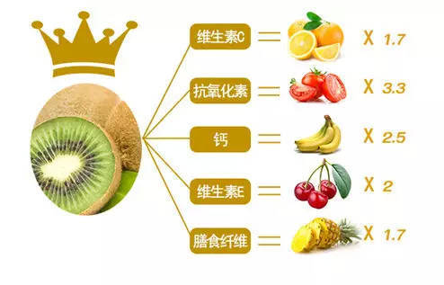 并且100克的猕猴桃维生素C含量=10个柑橘=13个柠檬=30个苹果