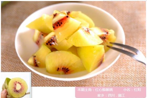 成熟后的红心猕猴桃玲珑可爱,大体呈圆柱型,果心横截面像光芒四射的太阳,所以它有个形象的名字——红阳猕猴桃。