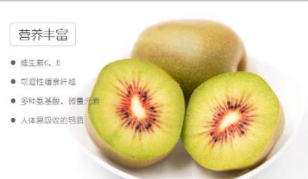 红心猕猴桃被誉为“水果之王”、“维C之冠”、“红色软黄金”,其营养价值即使跟新西兰黄金奇异果相比也毫不逊色。其最优秀的特征之一是维C含量十分丰富,是苹果的20-80倍,鲜果中含有人体必需的17种氨基酸和多种维生素及矿物质。