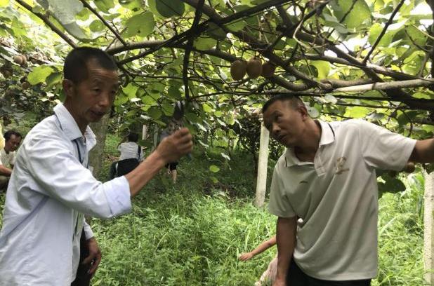 授完课以后,廖德光带领大家来到桐龙村贫困户唐妙金的猕猴桃种植基地实地教学,传授猕猴桃种植技术。廖德光说“扶贫不是养懒汉”,夸赞唐妙金有志气,贫困户只有依靠自己勤劳的双手才能真正脱贫。
